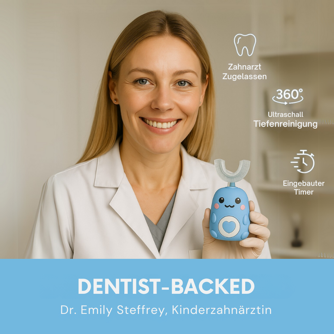 „Als Kinderzahnärztin weiß ich, wie schwer es für Eltern ist, das Zähneputzen zu einem positiven Erlebnis zu machen. Brushi™ hat mich wirklich beeindruckt – mit seinem kinderfreundlichen Design und den sanften U-förmigen Borsten, die alle Zähne auf einmal reinigen – besonders hilfreich für kleine Kinder mit empfindlichem Zahnfleisch.
