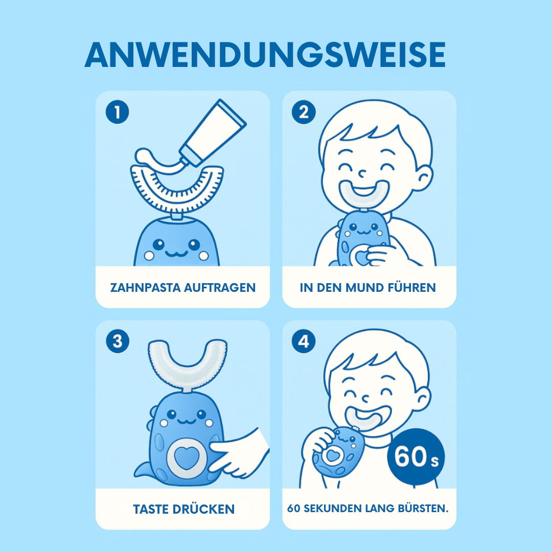 In nur 60 Sekunden werden alle Zähne gleichzeitig gereinigt – kein Drama, kein Stress.