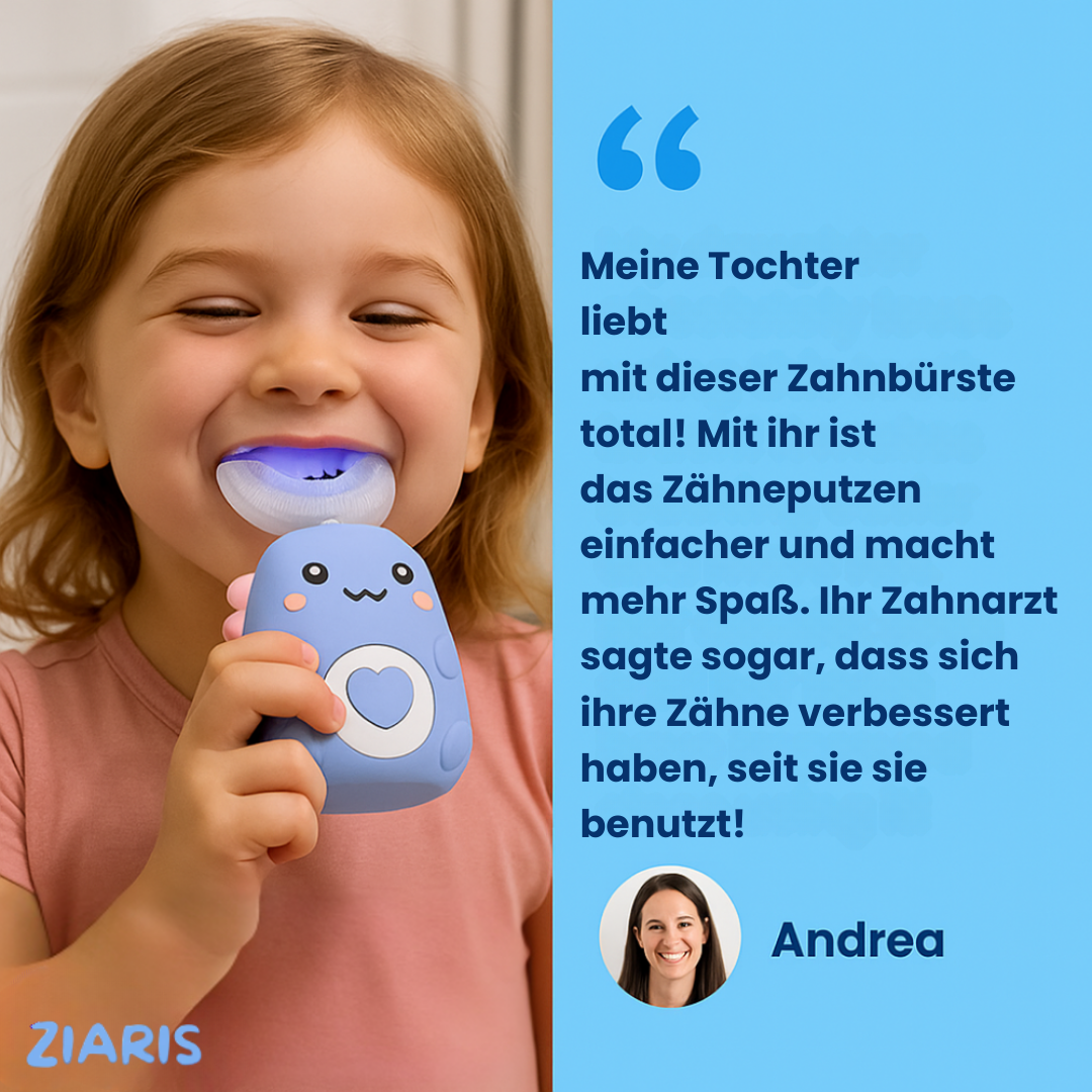 Es macht das Zähneputzen für Kinder einfacher und für Eltern weniger stressig. Ich empfehle es Familien, die gesunde Putzgewohnheiten auf eine Weise aufbauen möchten, die sowohl wirksam als auch angenehm ist.“