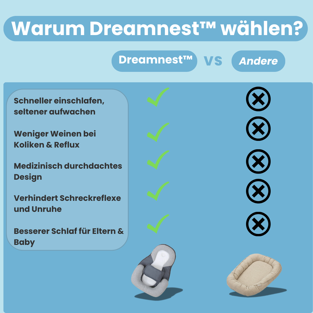 Schenke deinem Baby die sicherste und geborgenste Schlafumgebung von Anfang an – mit dem DreamNest™. Dieses ergonomisch geformte Babybett wurde gemeinsam mit pädiatrischen Osteopathen entwickelt, um optimalen Schlaf, Sicherheit und Wohlbefinden zu fördern.