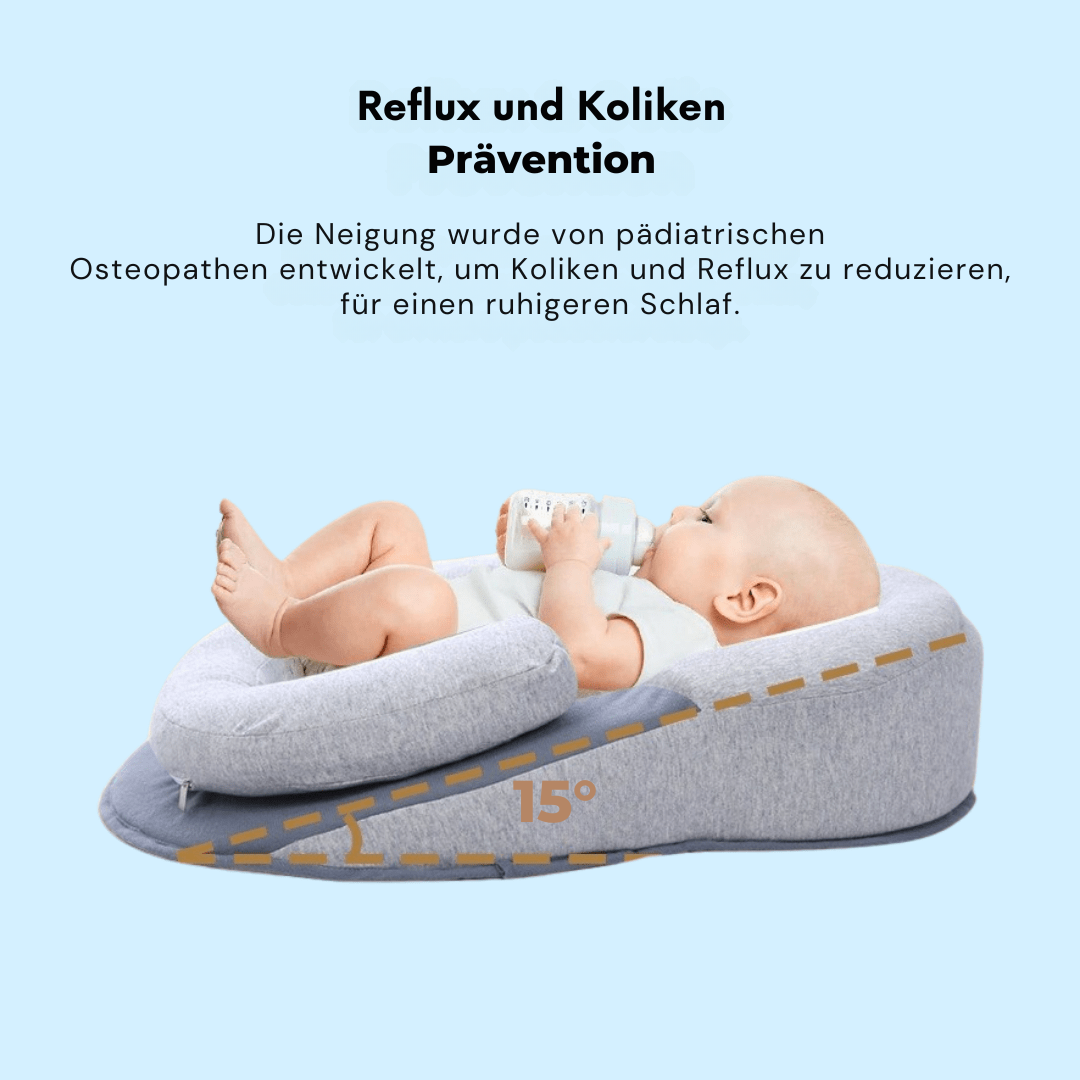 Durch die sanfte Neigung liegt dein Baby leicht erhöht – ideal zur Linderung von Verdauungsbeschwerden.