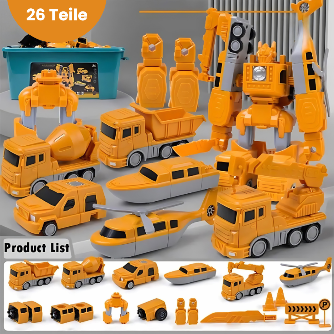 Die Magnetische Bauwelt erweckt einzigartige Fahrzeuge zum Leben – Lastwagen, Flugzeuge, Boote – die nicht nur eigenständig bespielt werden können, sondern sich auch zu einem Superroboter kombinieren lassen! Jedes Teil fügt sich dank cleverer Magnetpunkte mühelos zusammen. Kein Frust, nur reibungsloses Spiel, während dein Kind zwischen Roboter und Fahrzeugflotte wechselt, bereit, Land, Luft und Meer zu erobern.
