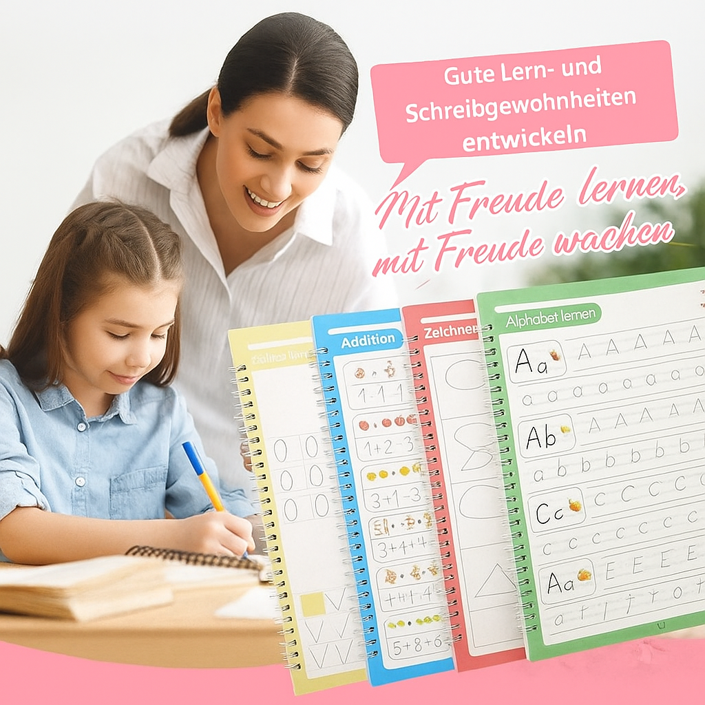 Mit dem Calligraphy Book™ können sie spielerisch üben, die Koordination beim Schreiben zu kontrollieren. Kinder finden das toll.